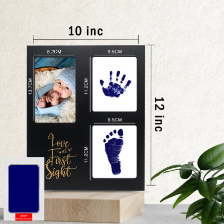 Kit Contains: 2 Non Touch Ink Pad, Wooden Frame with Table top and Wall Hanging, 4 Imprint Card (Impressions can be taken on both side of card, total 8 imprint is possible). No Skin Contact: Ink pad ensures baby’s foot or Hand never touches the ink. Mess Free and easy…